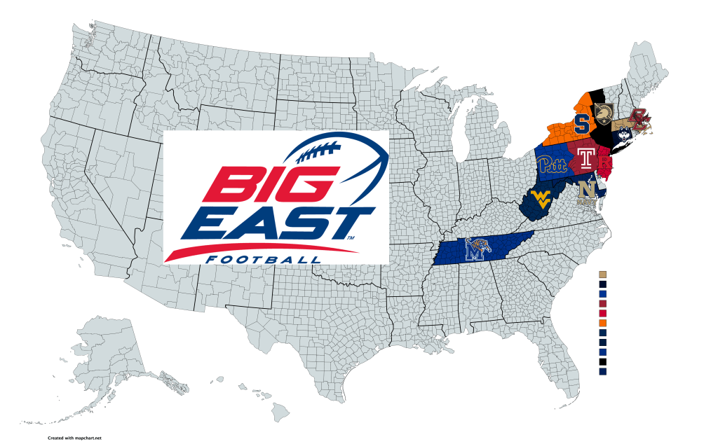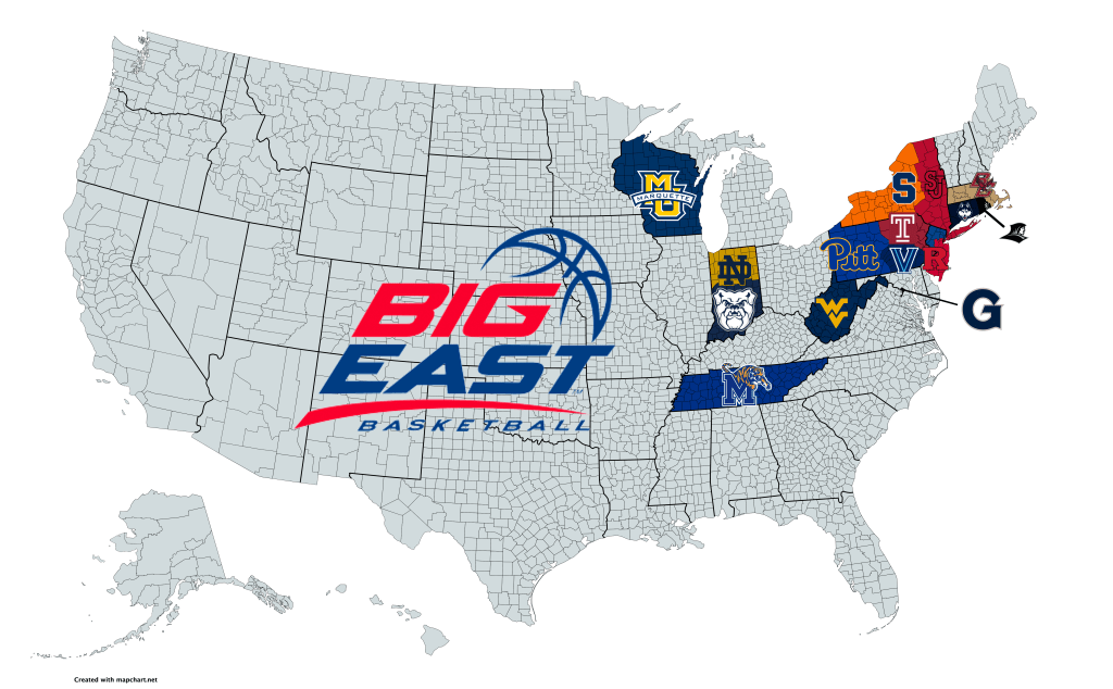 The Big East is known for basketball, so I made that a priority for the league. However, I also want to add former Big East teams (BC, Pitt, Rutgers, Syracuse, West Virginia) to bring back old rivalries and add some members to participate in football.