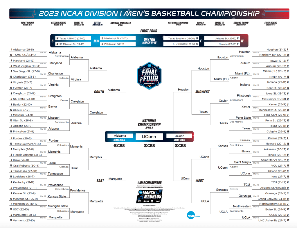 NCAA Bracket Predictions Click on the image to make it bigger! Share this: Click to share on X (Opens in new window) X Click to share on Facebook (Opens in new window) Facebook Like Loading...